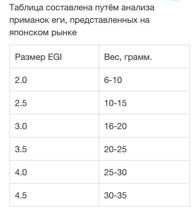 Таблица эта просто как ознакомительная чтобы люди хоть представление какое то имели.. Висит она и в тырнет-магазах наших, где кальмарки присутствуют.. Многих эти удочки и отпугивают этими самыми EGI.. Для меня кальмаровые палки "темная сторона Луны".. Я вот тоже к сезону палочку кальмаровую приобрел, буду изучать и сравнивать детально с равными по росту и тесту спиннингами что имею в арсенале.. В общем займусь изучением до сель мне неведомого..