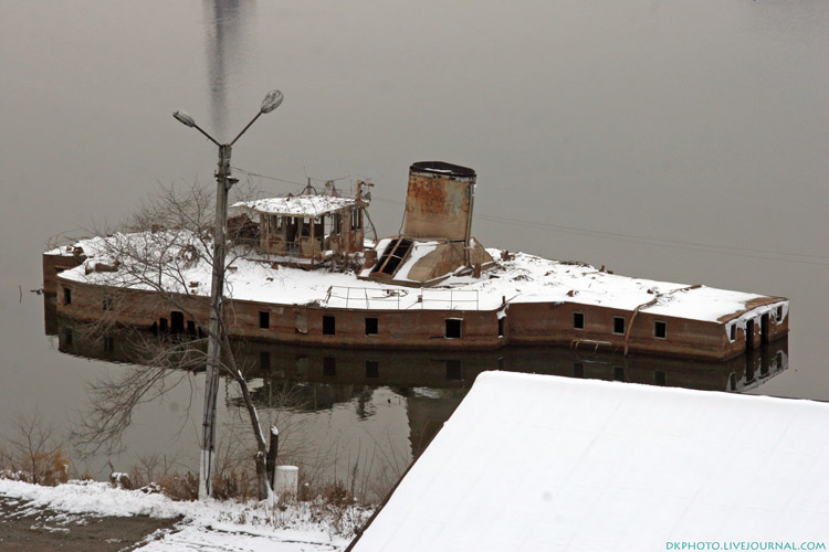 а на снимке полузатопленный пароход с Кировского