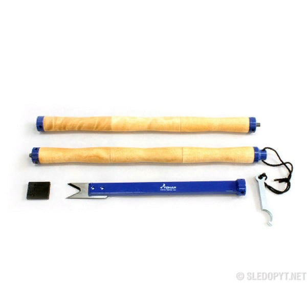 У меня это изделие от долгой и постоянной эксплуатации выгнулась, стала кривой. Кроме того, ручки упирающиеся в синие металлические кольца соединительные разбились и стали сползать вниз.Василич, на этой пешне такой номер не прокатит, ибо она вот такая.