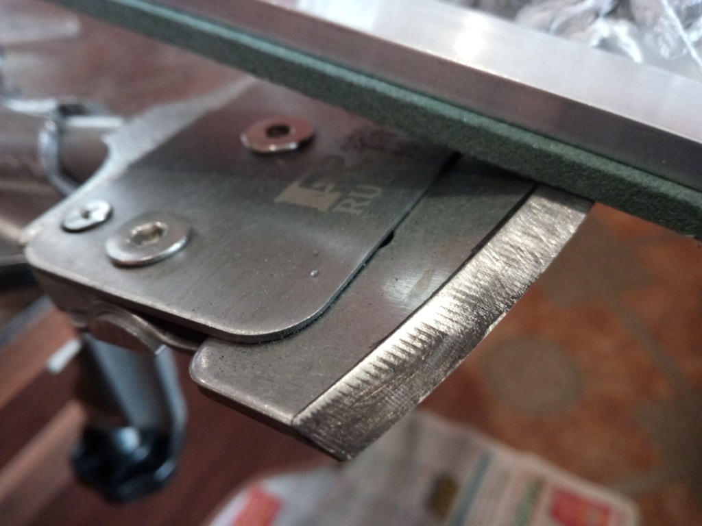 Поскольку сама точилка уёбненькая и ножи точить на ней грешно, то угол и радиус зафиксированы намертво и эта вся приспособа используется только для заточки ножей бура
