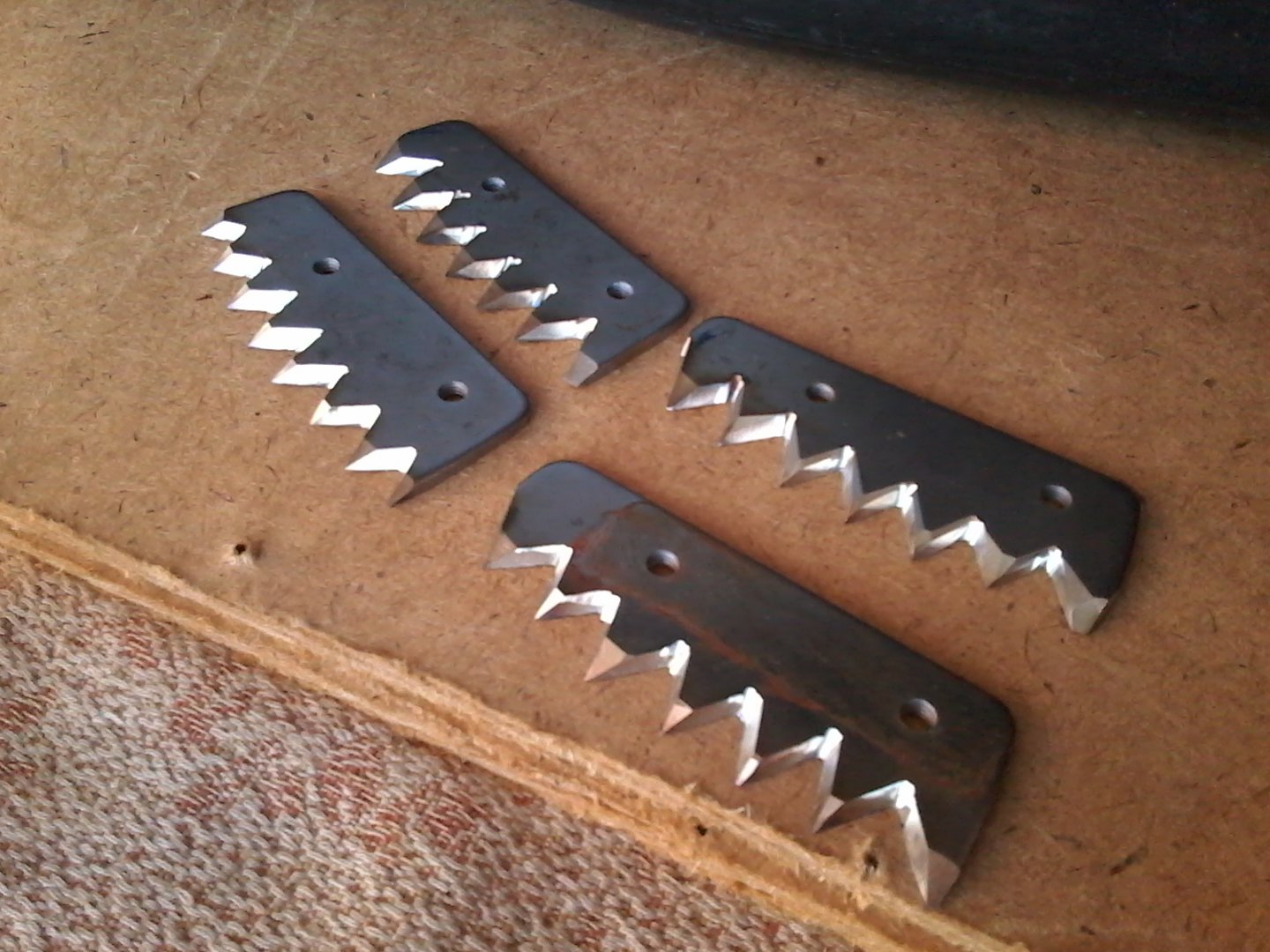 Это будет следующим этапом. Задача была отработать технологию. Сейчас делаю заготовки для зубчатых ножей.Назим,я вот переделал на такие, маленько болгаркой порезал, заточил на тарелки ножи огонь.
