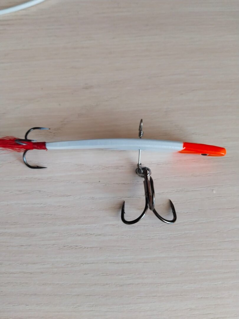 Бокоплав впервые использовал в прошлом сезоне. Светонакопительный. Результаты были хорошими. Декабрь, январь и половина февраля работал хорошо. К весне подздулся. Тройник подвесной поставил 2 номер. Он, главная составляющая, т.к. тройник на хвосте сплошное недоразумение и надежды на него нет.