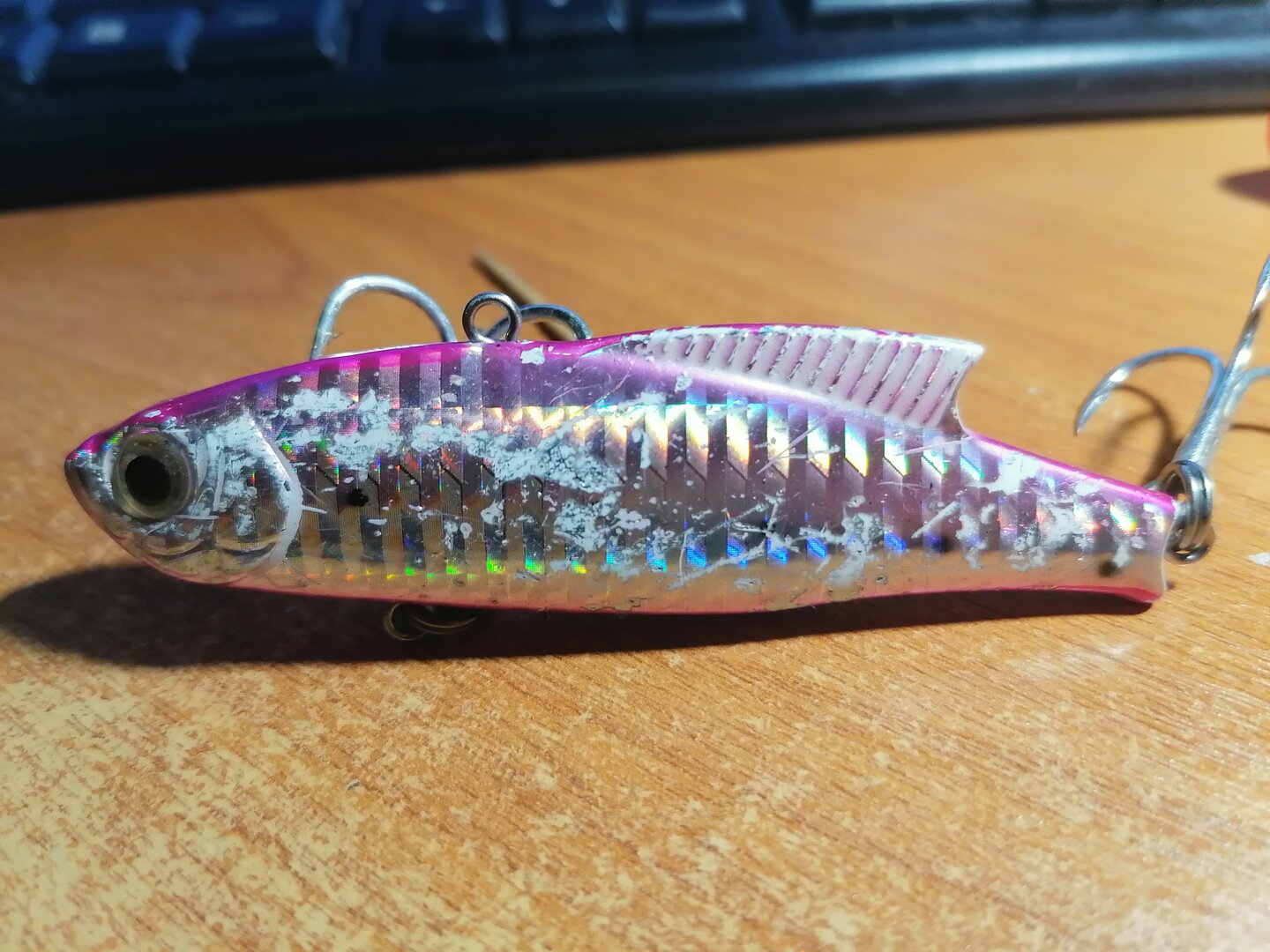 Вот одна из любимых приманок у меня и одного из моих товарищей. У товарища такой же виб ещё больше боевых шрамов имеет.