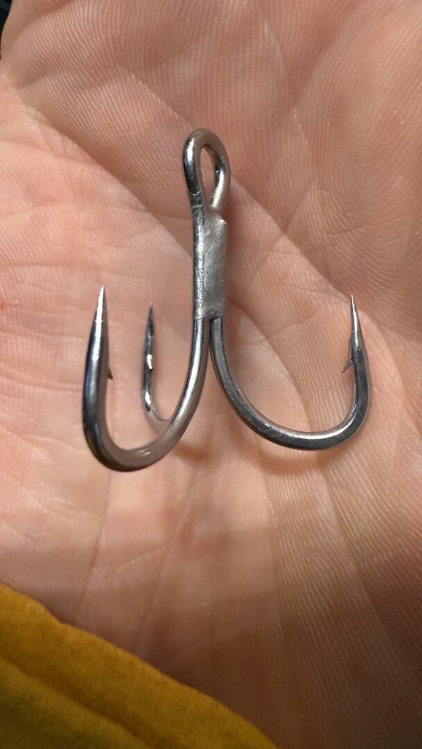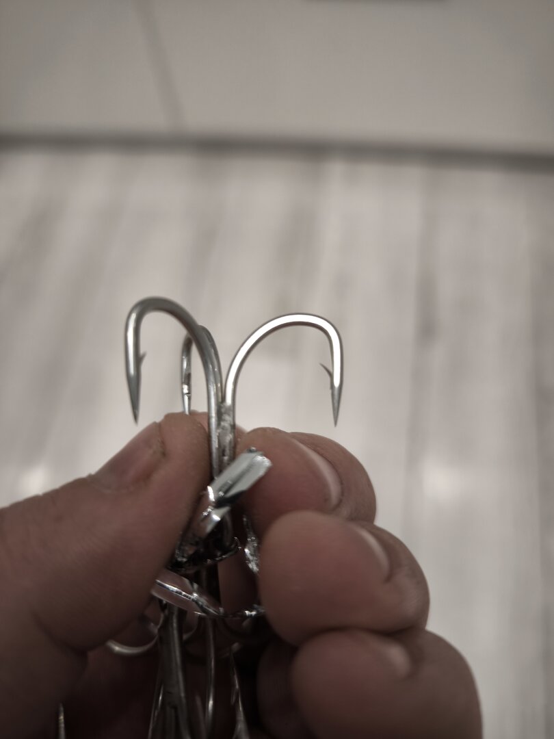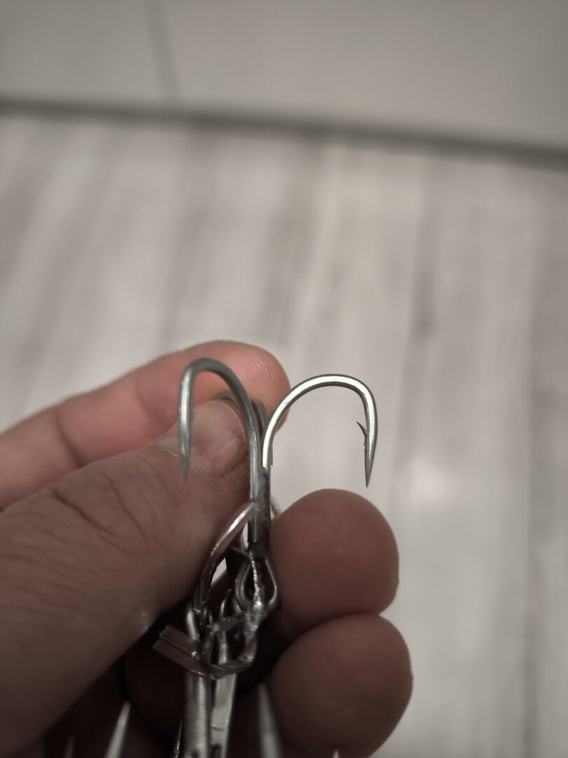 Собственно, вот мой подарунок себе на НГ. Всё заменил, кольца Гамакатсу, нижний тройник ВМС, задний Декой, оба номер 1. Для масштаба рядом старые положил.